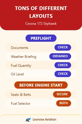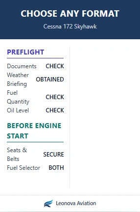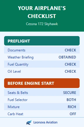 Turn your aircraft’s workflow into a beautifully crafted, professional checklist. Built your way — fast, clear, and cockpit‑ready.